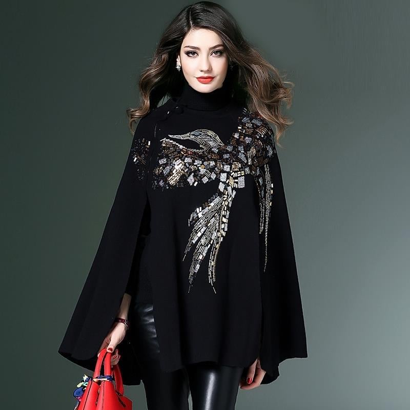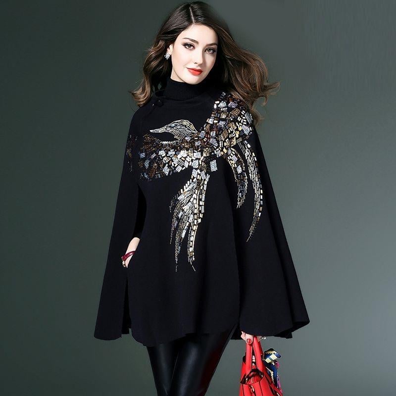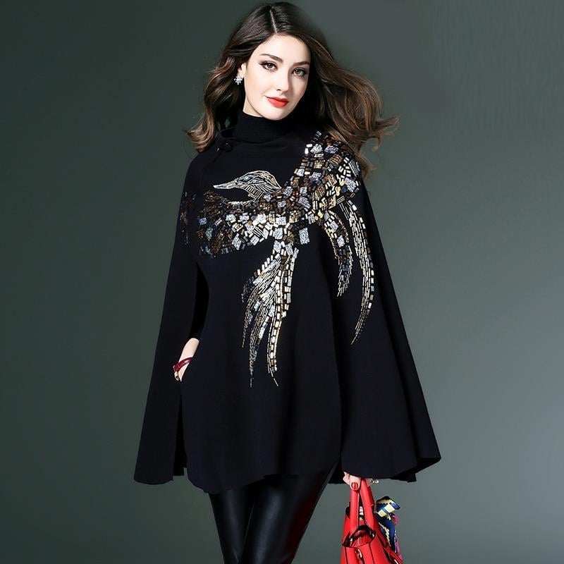 The cape version design offers a chic silhouette, while the princess sleeves and stand collar create an elegant look. Whether you're dressing up for a night out or keeping it casual, this sweater cloak is a must-have in your collection.